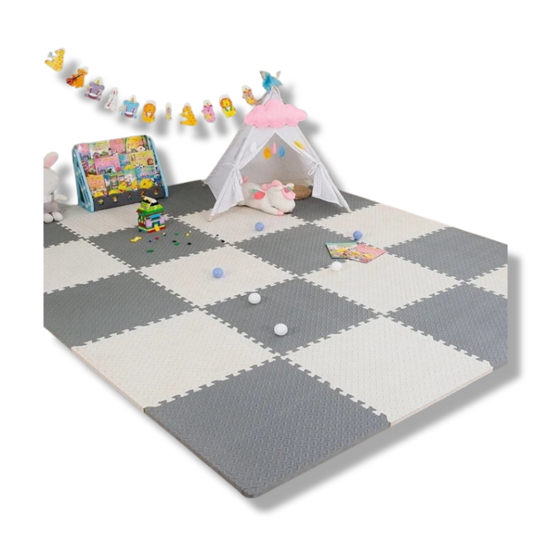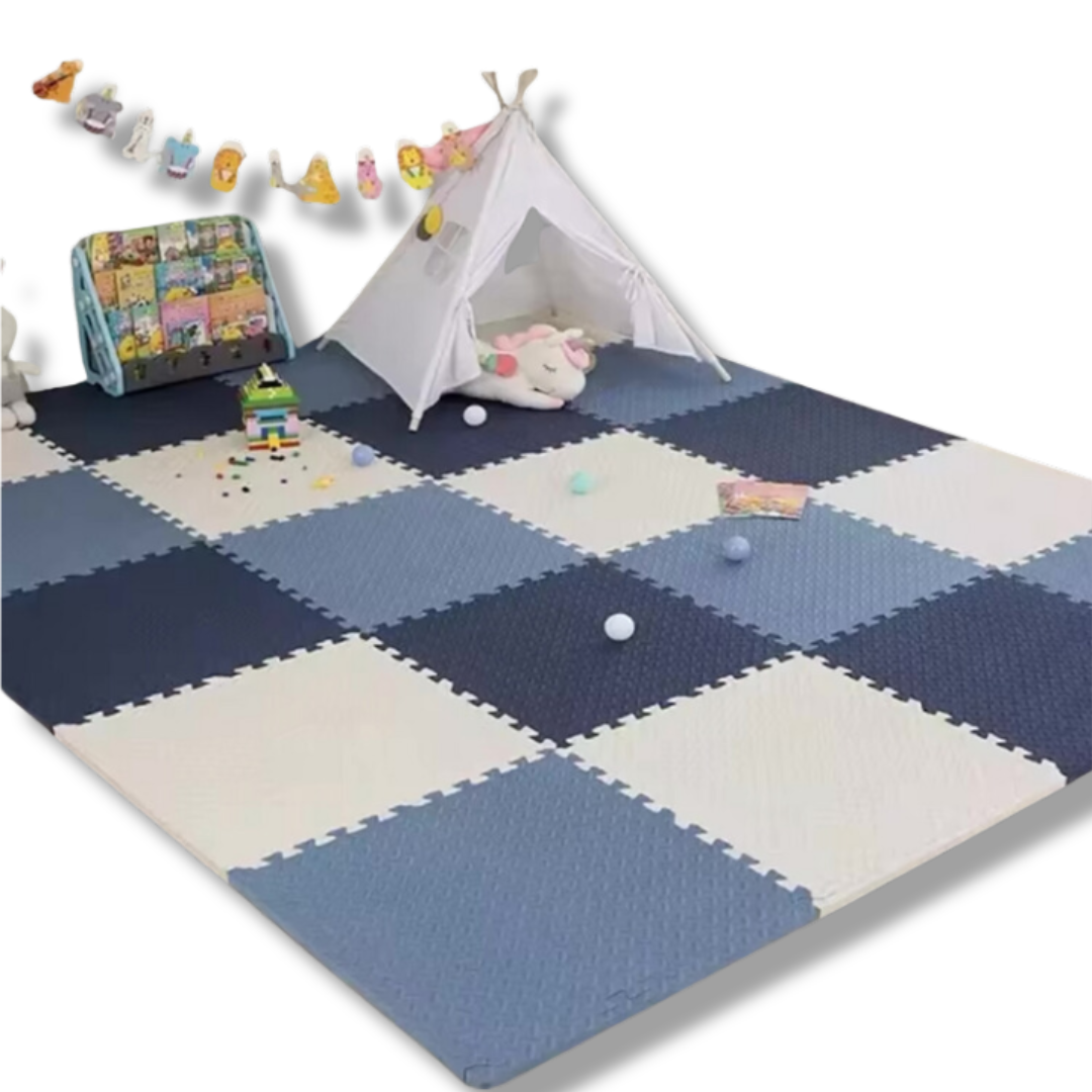 Discover a great play mat for your baby! This baby puzzle floor mat consists of 8 to 16 pieces that can be easily assembled. It provides a soft and safe play area for your child and is made from high-quality EVA foam, which is durable and gentle on babies' sensitive skin.