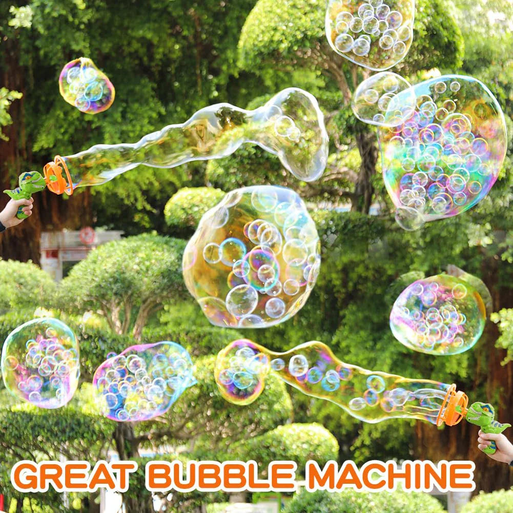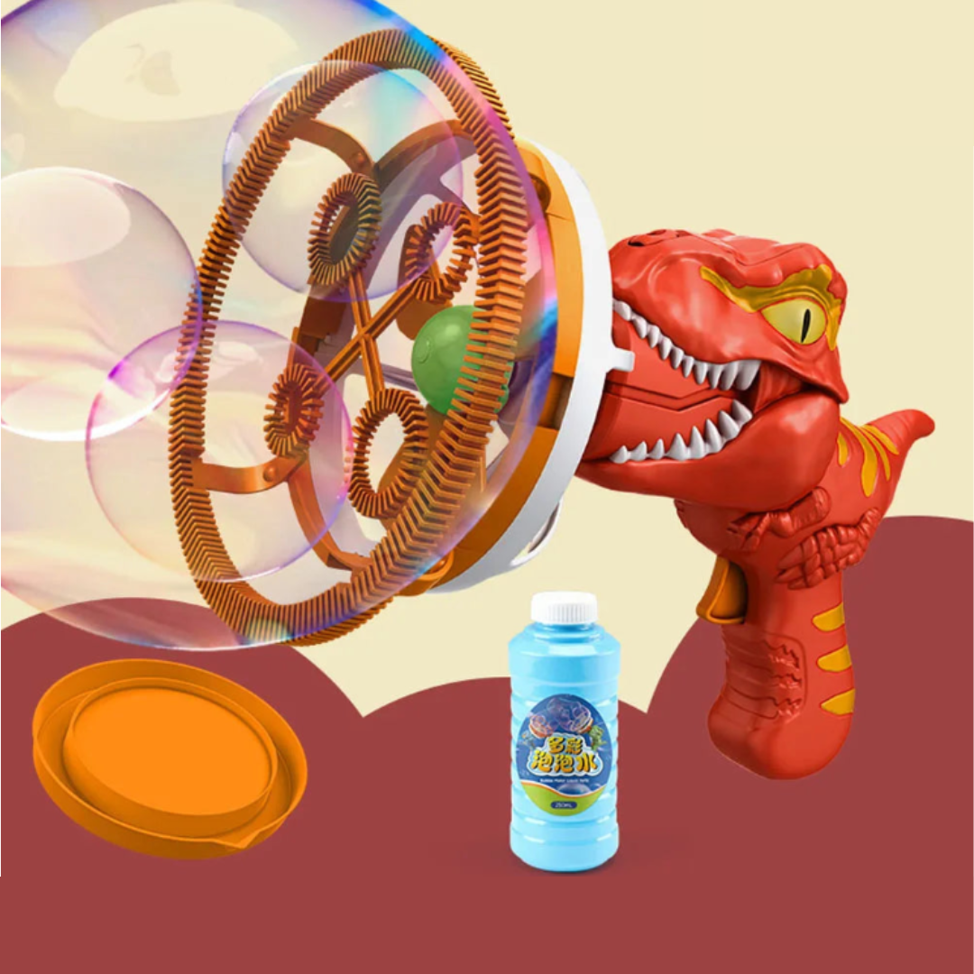 Bring bubbly fun to your backyard with the Dino Bubble Gun Machine – the perfect companion for outdoor adventures and giggly bubble chases!