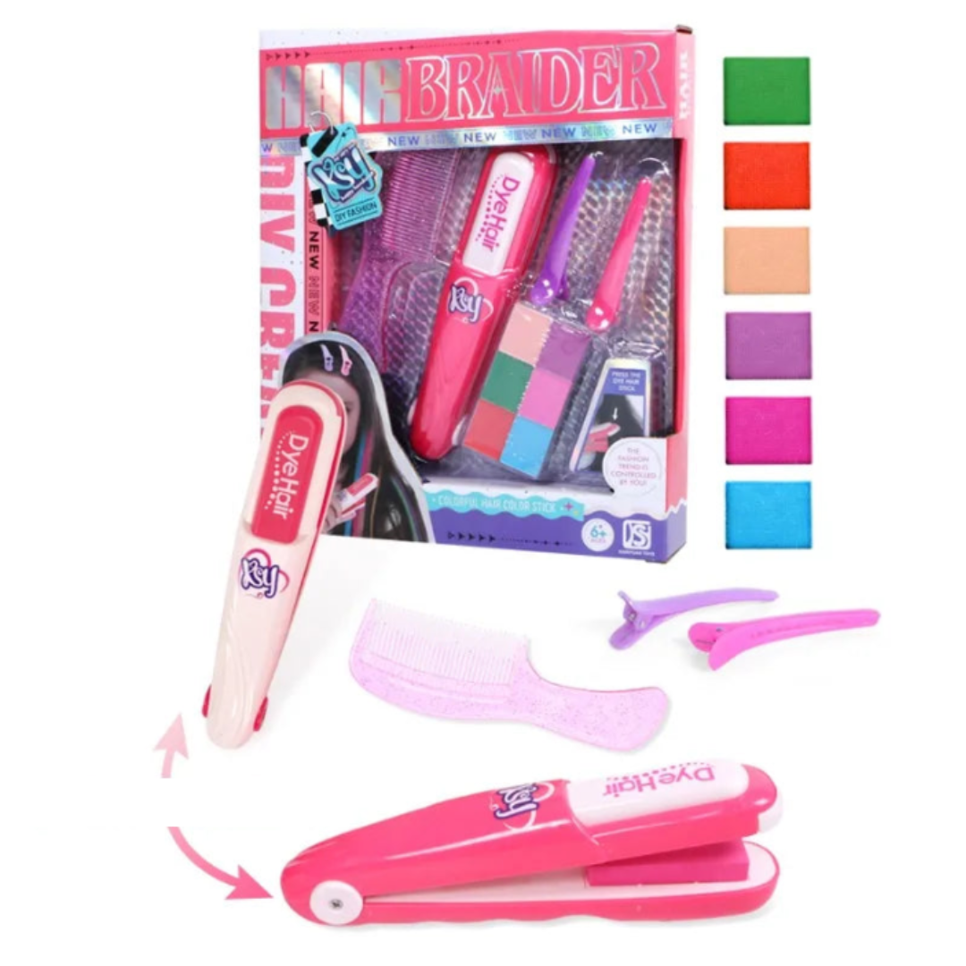 💇♀️ Creative Hair Play: Includes simulated hair dyeing sticks, giving kids the freedom to try colorful styles safely and creatively — no real dye, no mess!