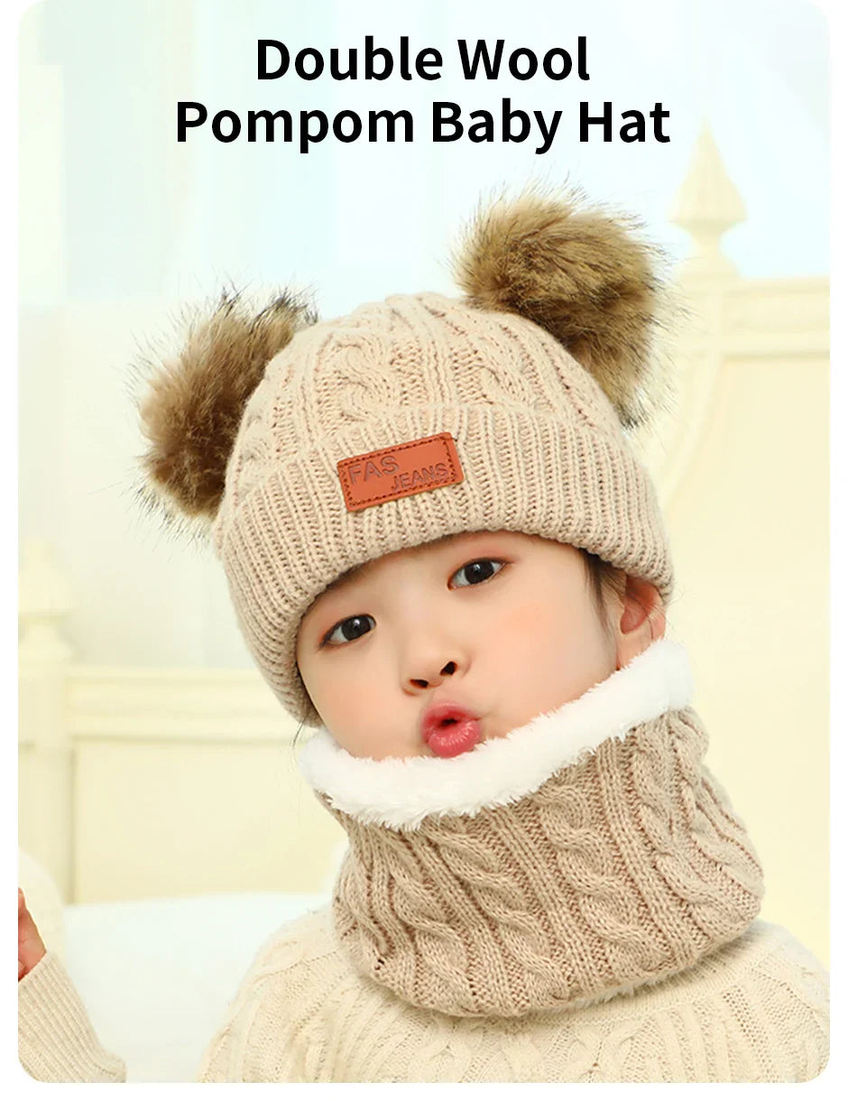 Cute Double Wool Pompom Baby Hat – Cozy Knit Beanie for Winter