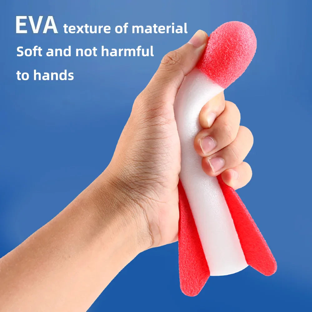 Powered by air and kid-energy, this safe and durable rocket launcher sends foam rockets soaring into the sky with a simple stomp. No batteries, no limits – just jump, press, and watch it fly!