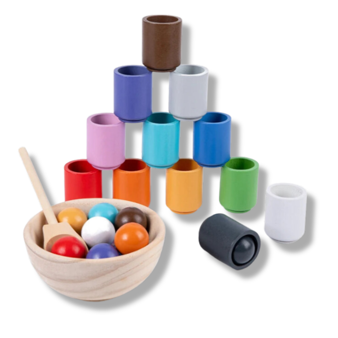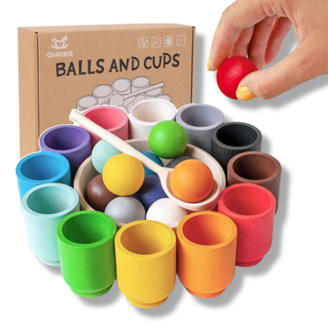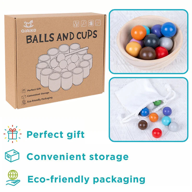 Discover our enchanting Baby Montessori Wooden Toy! The Rainbow Ball and Cup Color Sorting Games are perfect for little explorers like your child.