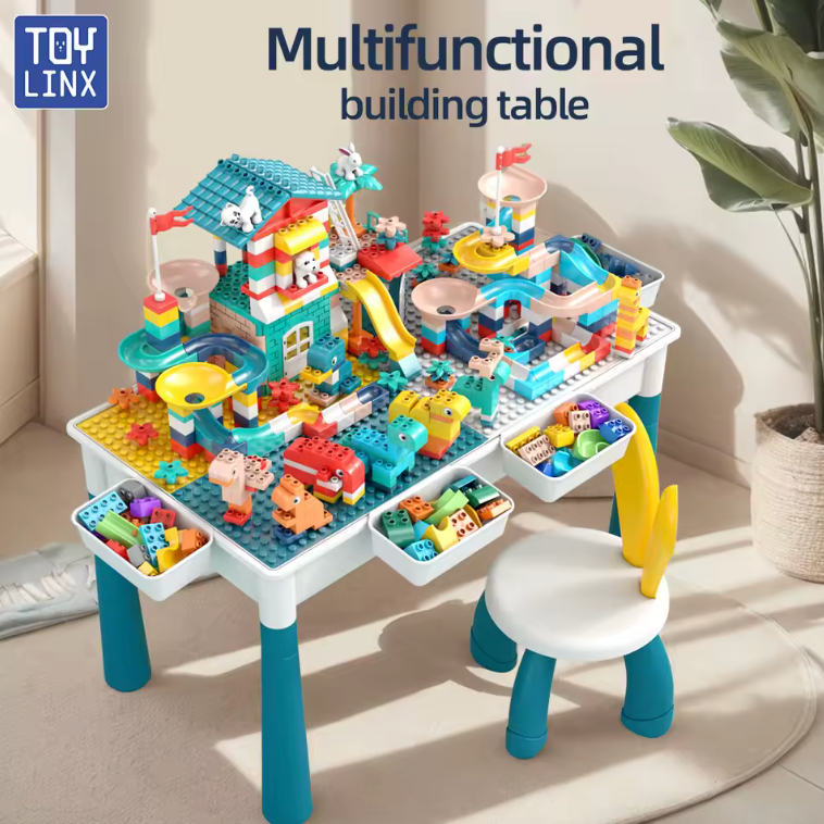 🎨 Multi-Functional & Fun: The table offers six different ways to play, transforming from a building block table to a study desk, snack table, water play table, and even a sand table. Simply swap the building block surface for a flat top and let your child dive into a variety of activities.